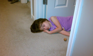 I’ll admit, after a day of running around at the park, I was TIRED. Apparently, so was The Little Girl. See exhibit A below. This is how I found her when I went up to bed. Sound asleep in her doorway. LOL!