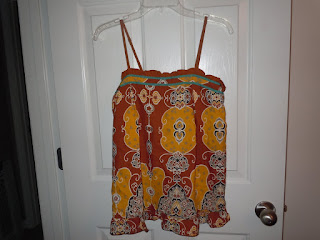 Last but not least is this summer top by Billabong. You can’t see it too well in the pic, but I was first attracted to it because of the 2 teal lines of material across the top. It really makes the design pop. I also love that it flares out just a bit at the bottom with a cute little ruffle.