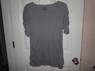My favorite piece of the day was this grey T-shirt by Mudd. It’s got lace built into the sleeves for an added touch of femininity. It’s also gathered on the sides at the bottom. Plus, the material is super comfy. Comfy and stylish at the same time. Yay-uh!