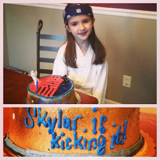 We celebrated her 6th birthday this month. My-Oh-my, where does the time go? Little miss techy opted for an iPod Touch rather than having a birthday party with her friends so we just had a small family celebration at the house. She’s rather interested in karate these days so she requested a “ninja” cake and wore her karate uniform to the party.