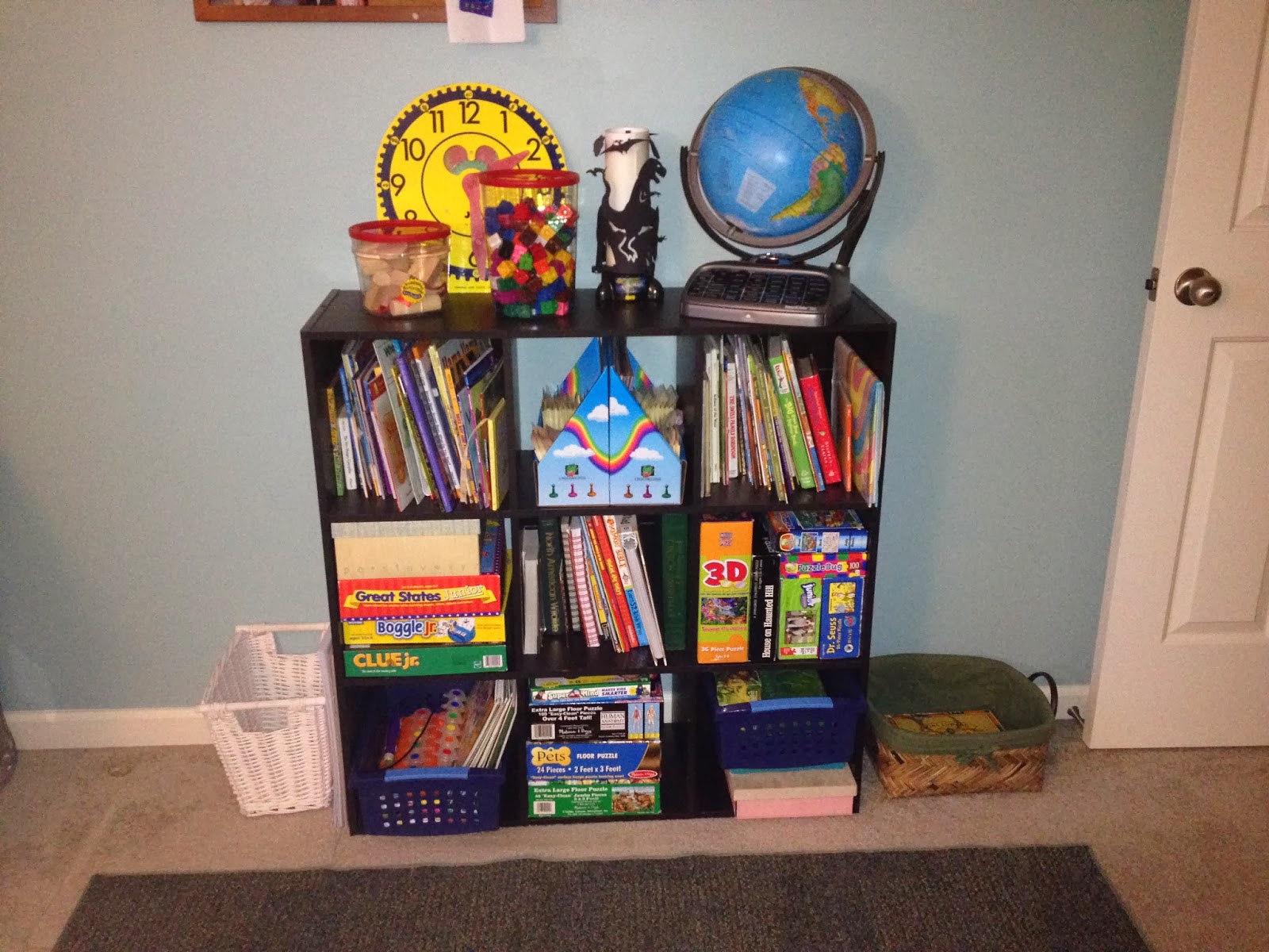 There is also a bookshelf which used to reside in Skylar’s room that now is housing only educational materials.