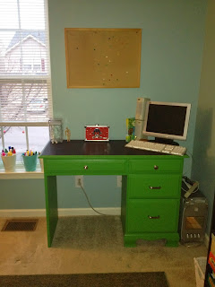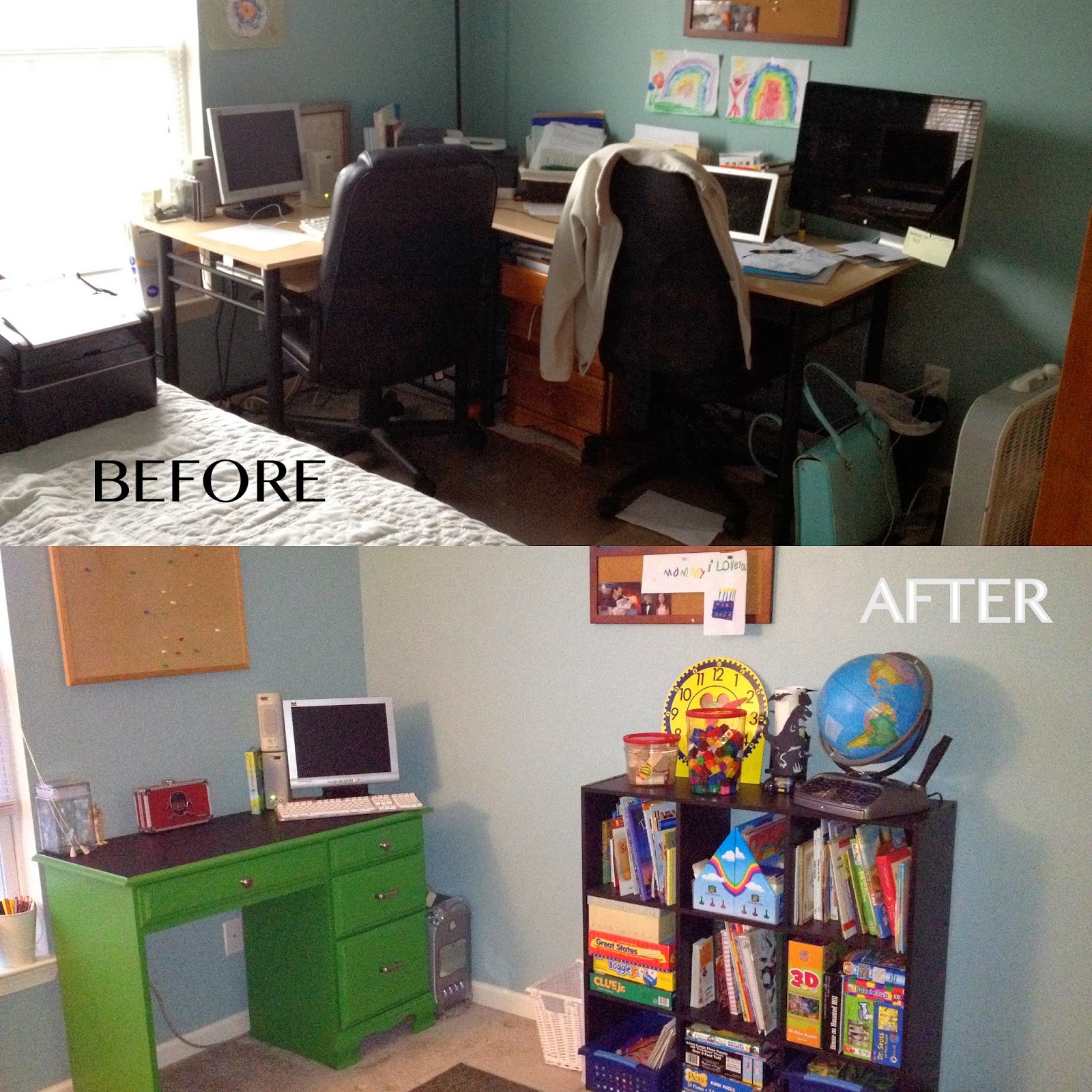 Now, when you enter the room you see Skylar’s desk, which got a makeover a while back. This space will mainly be for reading, writing, art or playing educational games on the desktop computer.