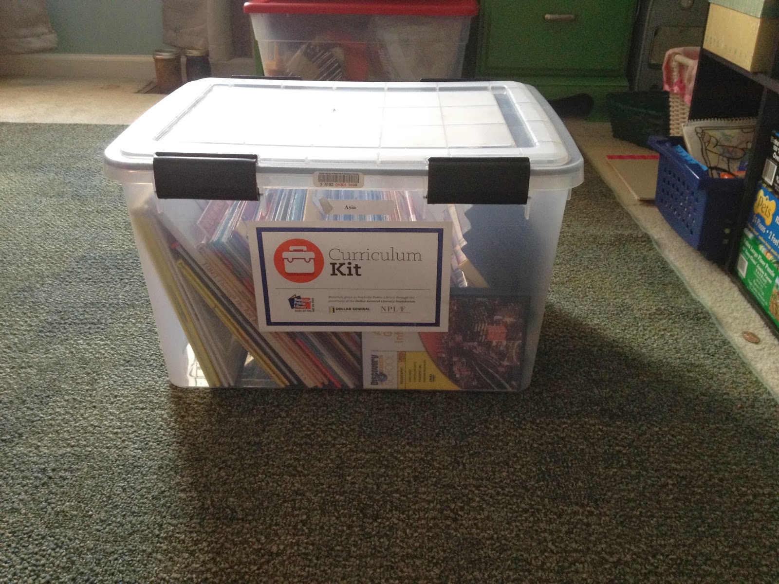 The kits are packaged in a medium-sized, sturdy clear tub. Our bin was full of books and DVDs about a variety of subjects relating to Asia. We have used this as our history and social studies requirement for the last 2 weeks as we worked our way through the material.