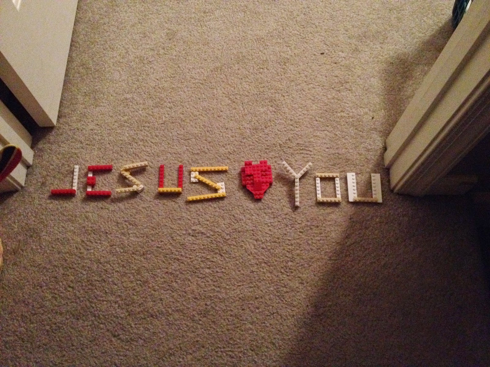 So, Easter rolls around. Again, I’m still trying to ride the fence so we got the basket and, in a last-ditch effort to try to bring the message back around to the true holiday meaning, our Easter Bunny does this. Yeah, our Easter Bunny is so awesome she can build with Legos. I should confess that the heart was SO hard that I almost abandoned the whole idea. Have you ever tried to build a heart shape out of legos? It was tricky, at best.
