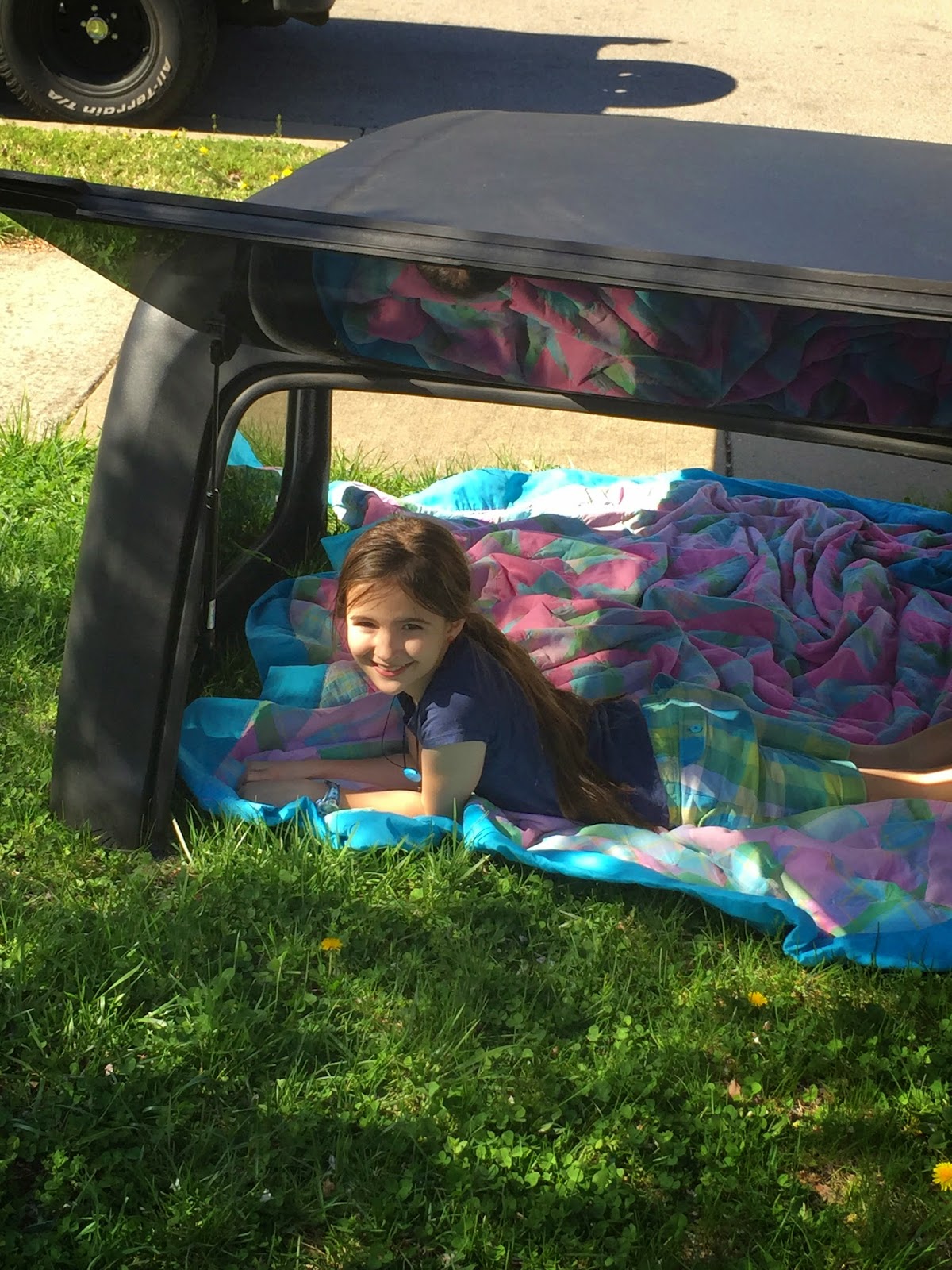 Our neighbor took tLG to play at Grand Ole Golf. And because she bought her a sno-cone, said neighbor is now the best ever!