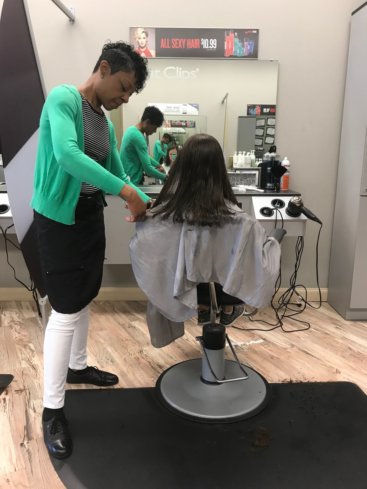 Getting her hair cut. Donated 12 inches. Her 2nd donation.