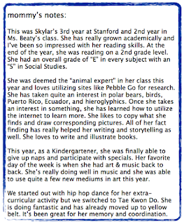 This is a tradition I started when she was in preschool. This form includes a quick interview about all of her favorite things as well as documenting her physical stats. I also jot down some of my own thoughts from the year on the back. It’s so fun to look back at the memories from each year and remember little quirks that I have already forgotten.