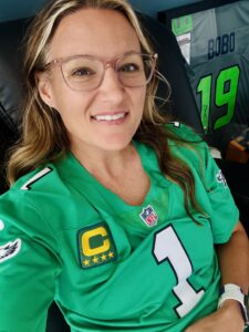 Now that Skylar is off to school, I’ve ventured out exploring on the weekends. I found The Market at 109, which is the cutest farmers’ market. I go at least once a month, especially for Bakes for Broly, Pops Pnutz, and Melmac Florals. There are always food trucks and live music too! It’s a perfect little Saturday outing. Otherwise, I’m usually at home doing puzzles or watching the Eagles because NFL is back, baby!